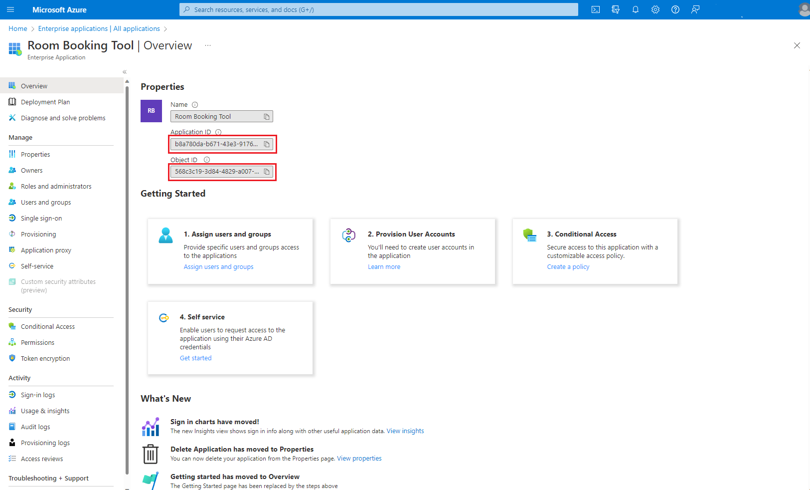 The following screenshot helps you find these IDs in Microsoft Entra ID: