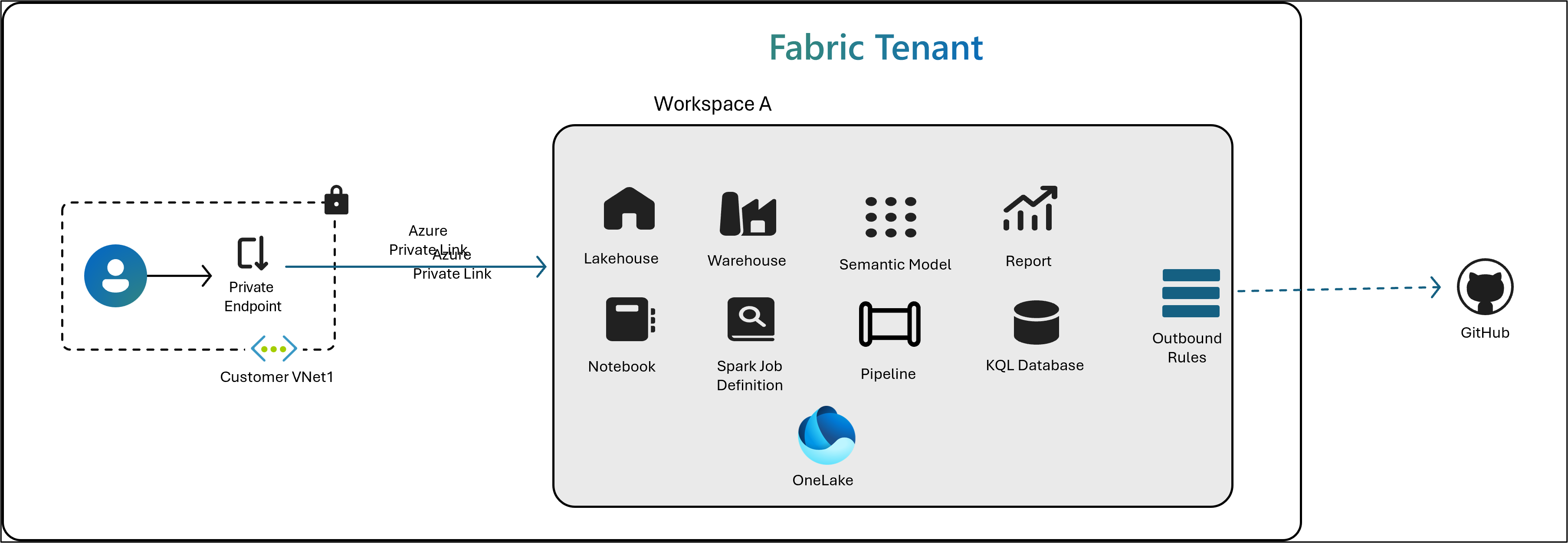 By default, Workspace OAP will completely block Git integration, because contacting an external Git endpoint would violate the "no outbound" rule. To resolve this restriction, Fabric introduces an admin-controlled consent setting for Git.