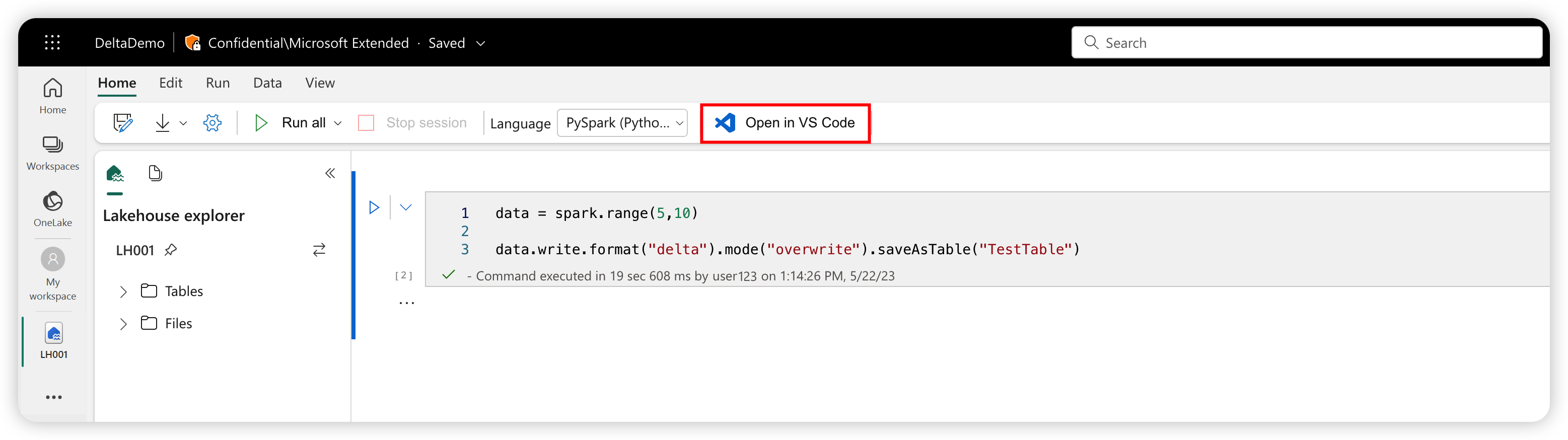 With this extension, you can also run notebooks on the remote Apache Spark compute for Fabric.