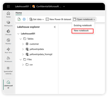 To explore your lakehouse data, you can add the lakehouse to an existing notebook or create a new notebook from the lakehouse.