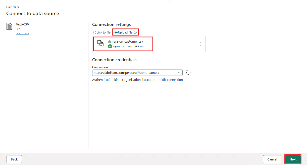 The ingestion step doesn't work if you don't have OneDrive configured, because Fabric can't access the uploaded file. If you already have the data available in your lakehouse or another supported location, OneDrive isn't required.