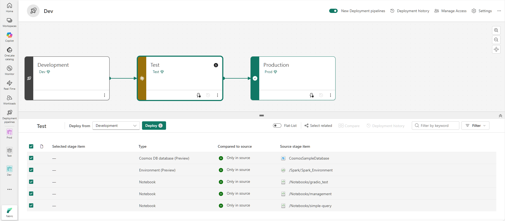 For more information about supported deployment pipeline items, see supported items in deployment pipelines.