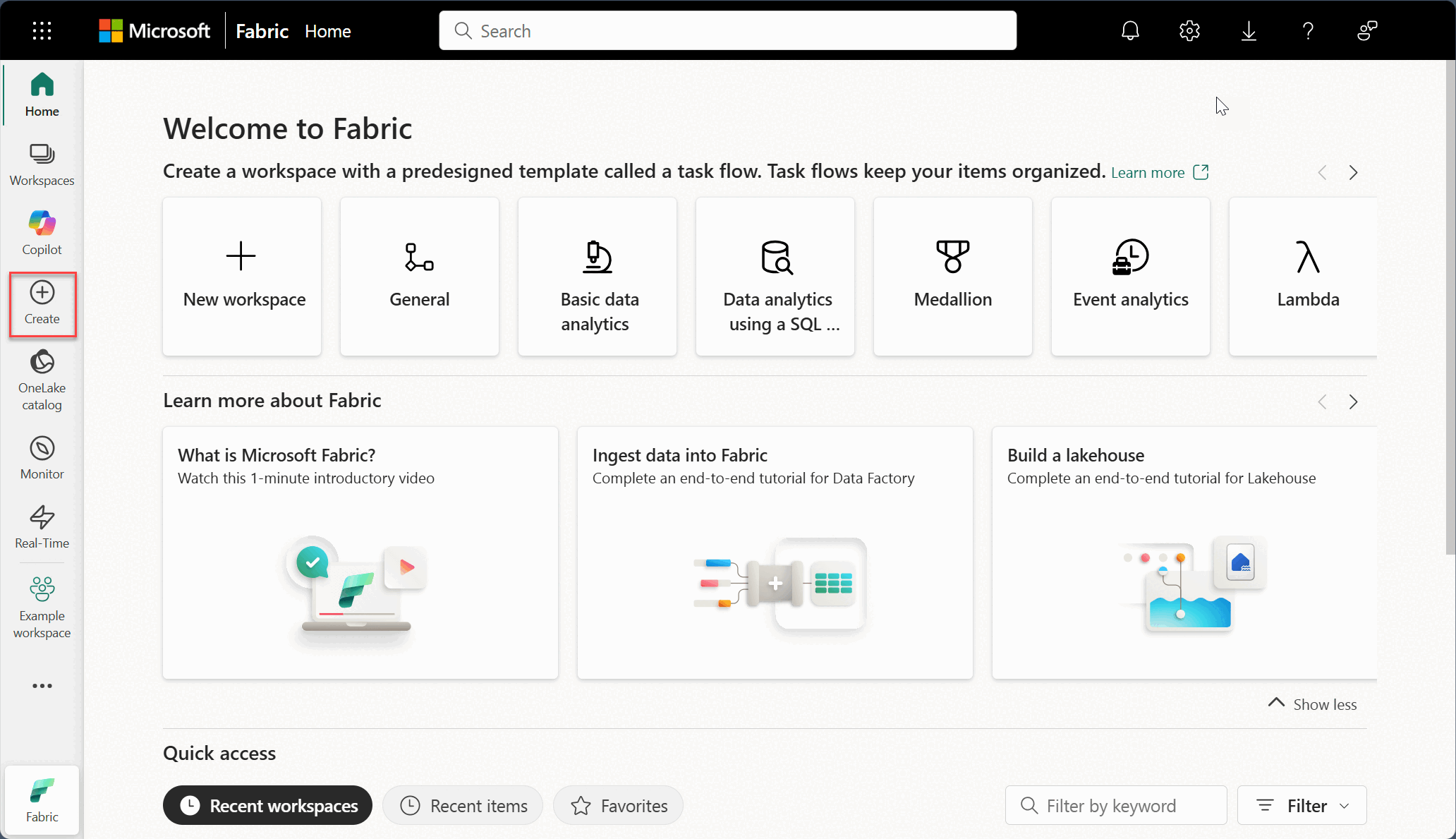 Open the Fabric portal (https://app.fabric.microsoft.com).