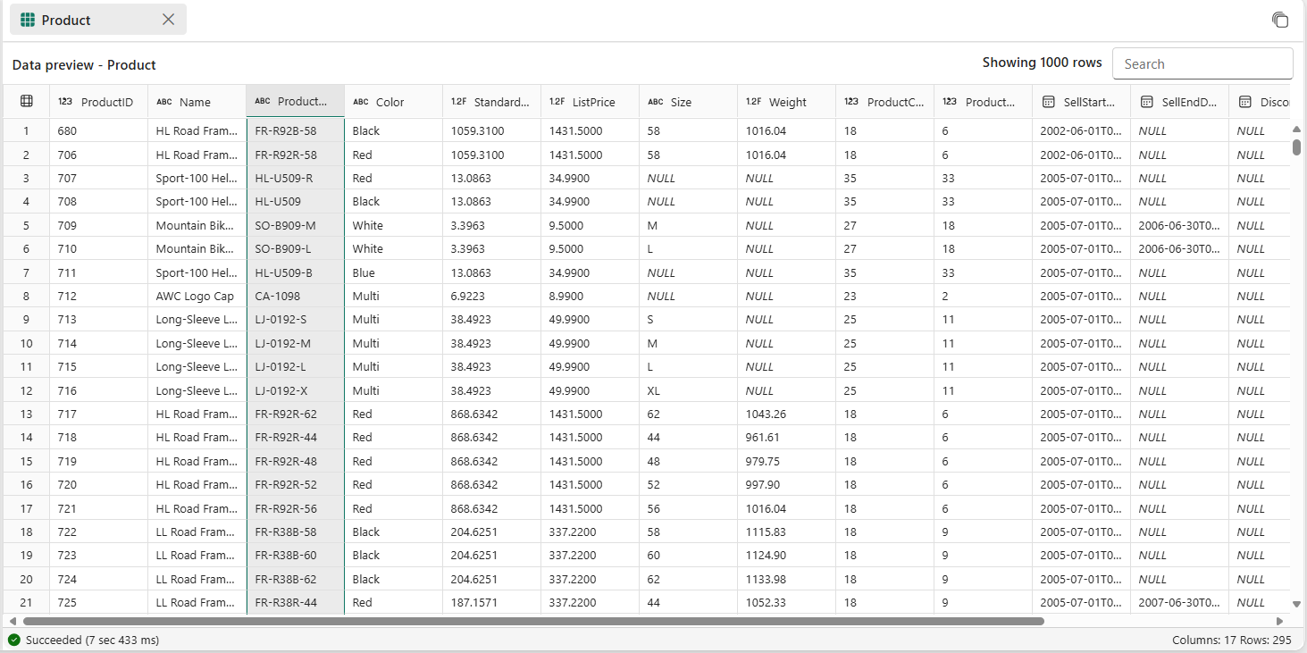 Screenshot from the Fabric portal of the Data Preview grid.