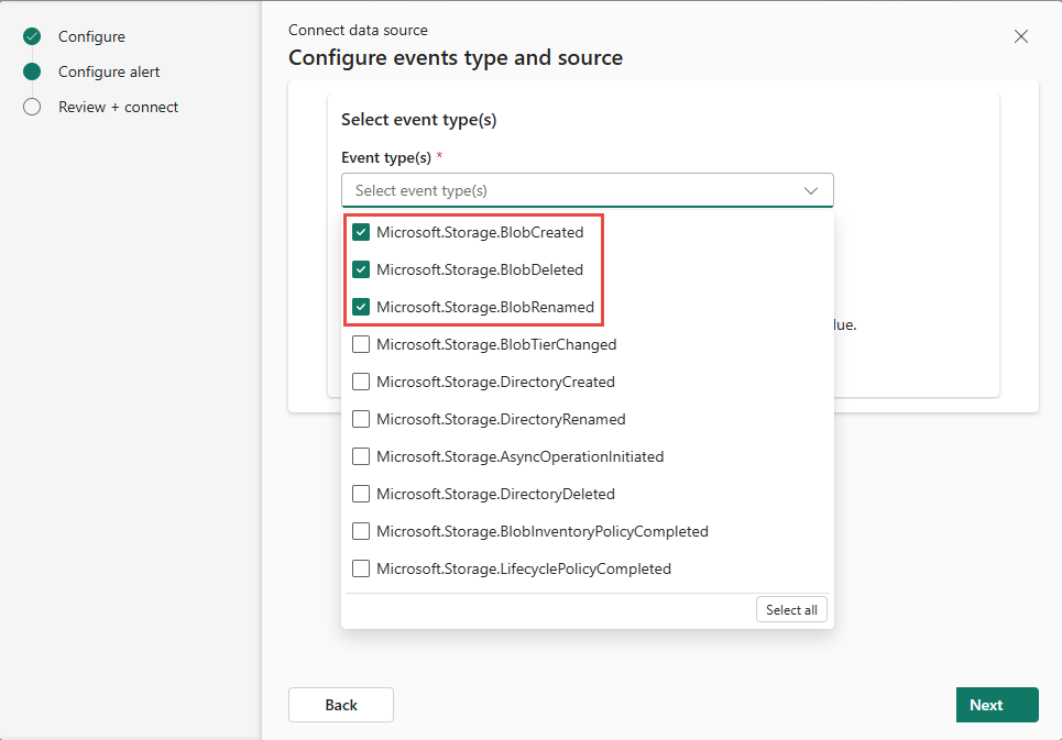 This article describes how to set alerts on Azure Blob Storage events in Real-Time hub.