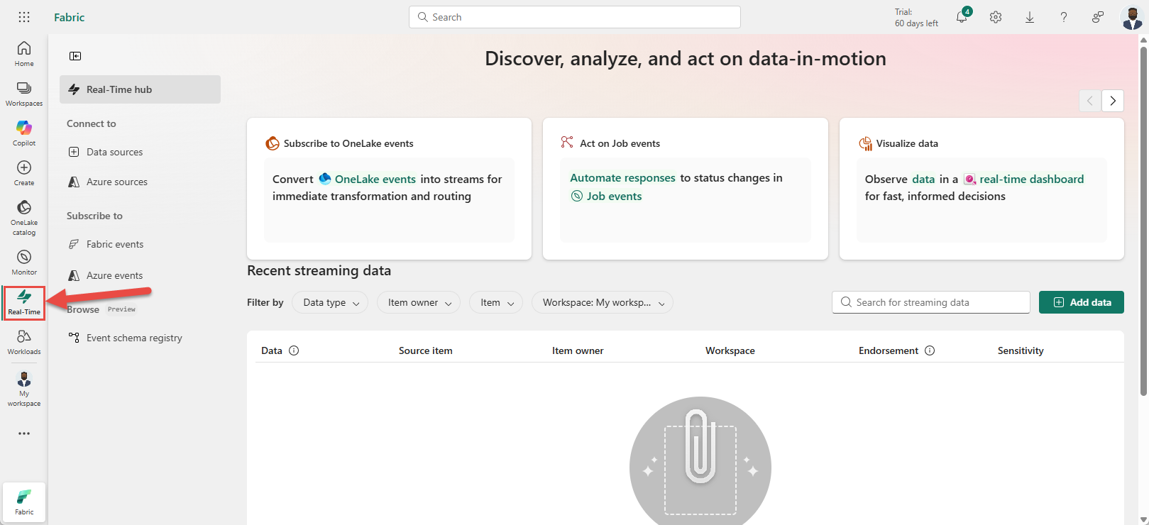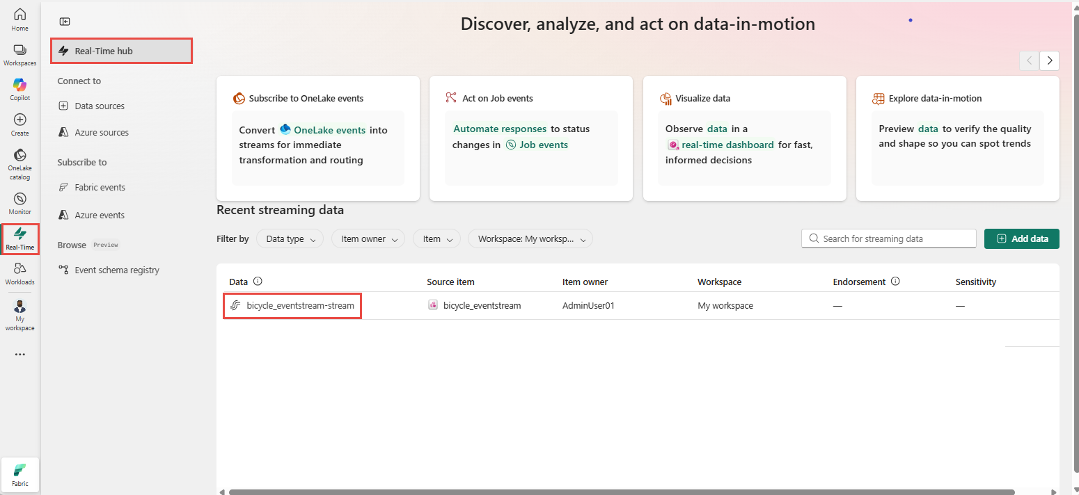 Navigate to Real-Time hub