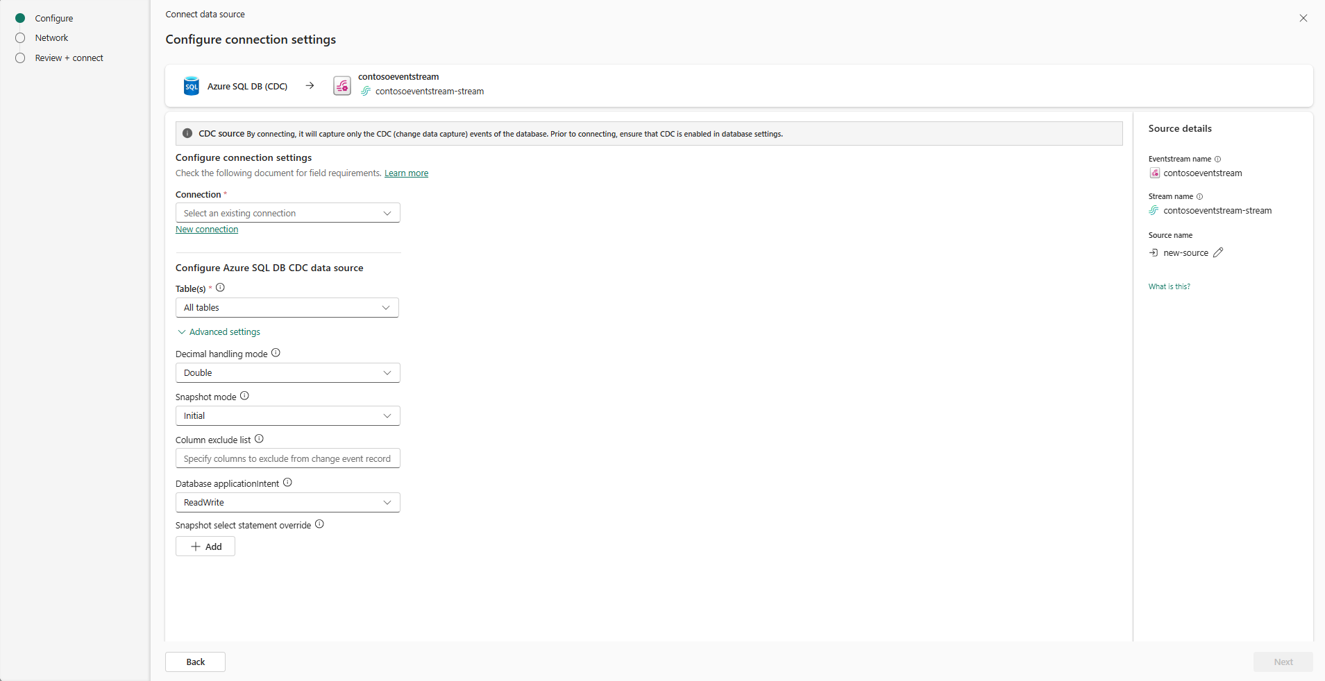6. You may expand Advanced settings to access additional configuration options for the Azure SQL Database CDC source: