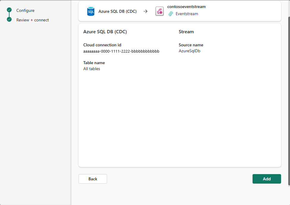 This article shows you how to add an Azure SQL Database Change Data Capture (CDC) source to an eventstream.