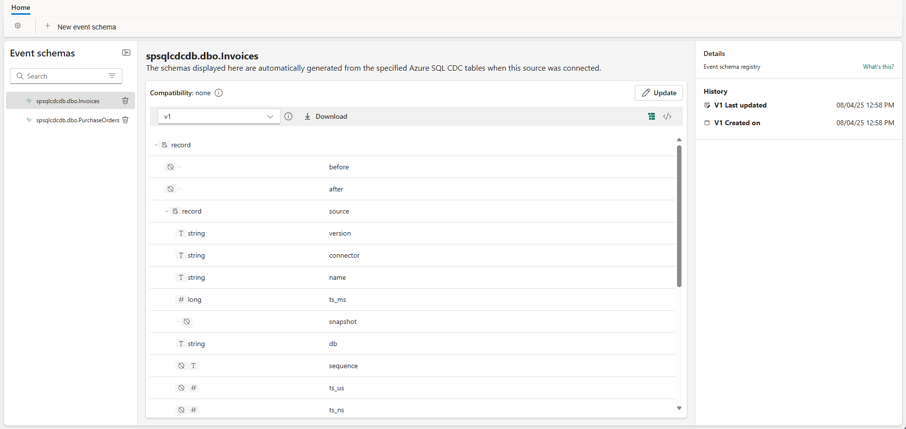 2. Select the schema set that the Azure SQL Database (CDC) connector created.