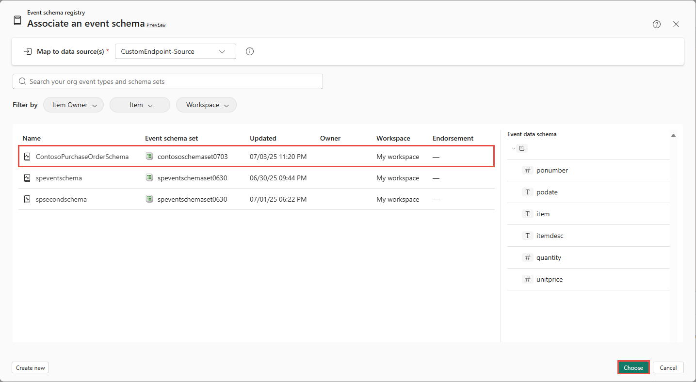 To use an existing schema, select Choose from event schema registry, and then follow these steps: