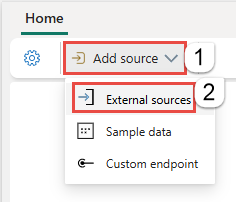 If you're adding the source to an already published eventstream, switch to Edit mode. On the ribbon, select Add source > External sources.