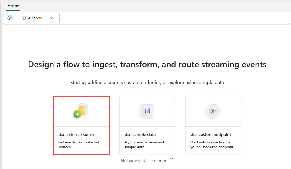 If you haven't added any source to your eventstream yet, select the Use external source tile.