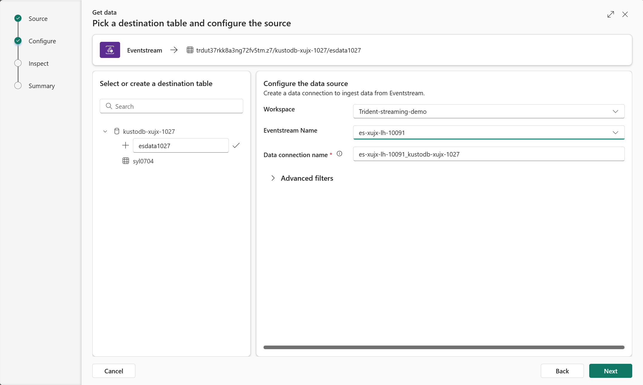 A wizard appears. To complete all the steps, follow the article Get data from an eventstream.