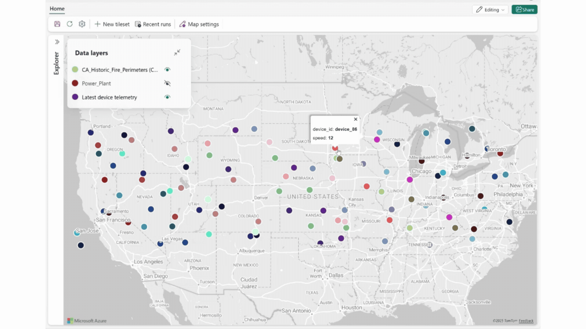 Map (preview) is a powerful geospatial visualization platform that transforms spatial data, whether static or real-time, into actionable intelligence. By uncovering patterns, relationships, and trends across space and time, Map reveals insights often missed in traditional charts and tables, helping you make informed decisions with greater clarity.