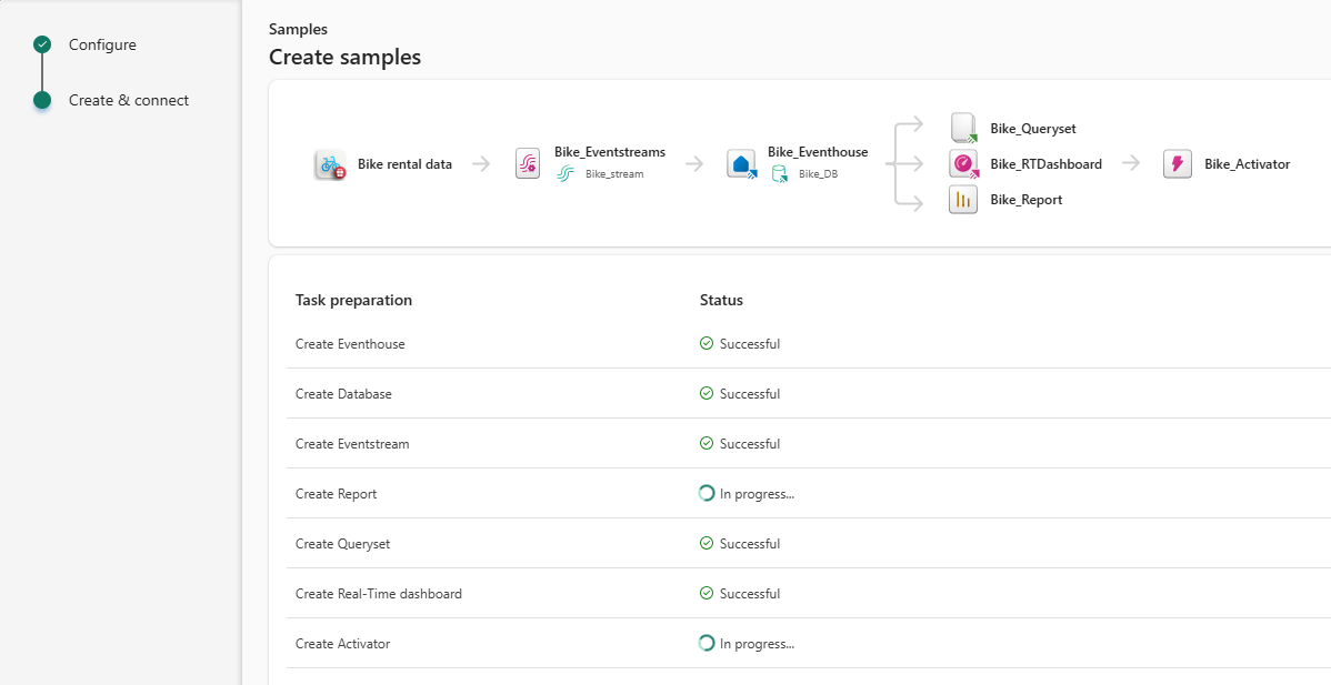 3. In the Create samples window, select Get started with bike rental data.