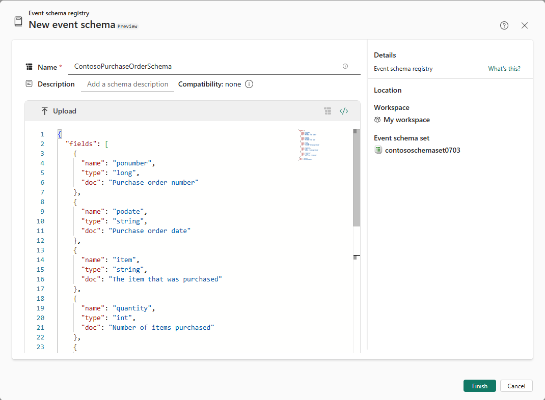 To learn how to use schemas in Fabric eventstreams, see Use schemas in eventstreams.