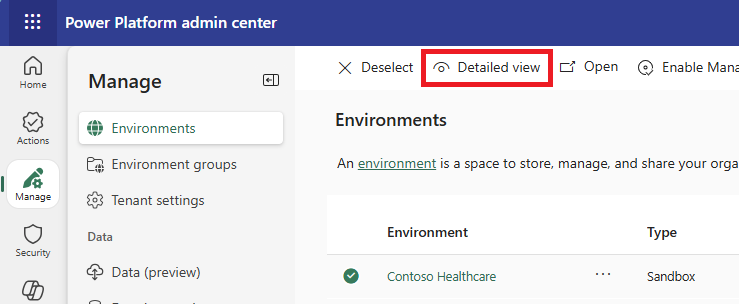 To deploy healthcare solutions, use the Microsoft Power Platform admin center. This method for managing app installation uses the same administrative tools as Microsoft Dynamics 365 applications.