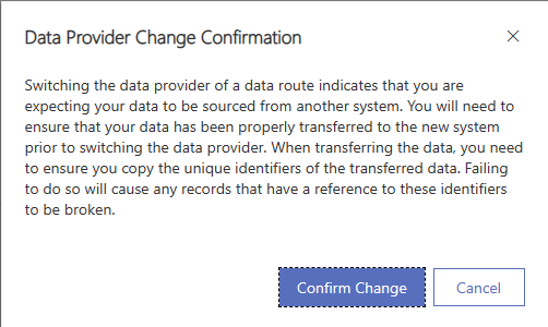Change the value for the Data Provider to Use field. You receive a message prompt with a confirmation.