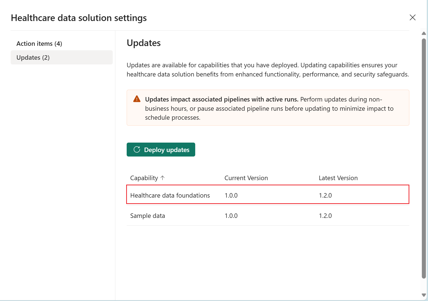 Follow the instructions in Deploy healthcare data solutions to deploy the initial healthcare data solutions component to this workspace.