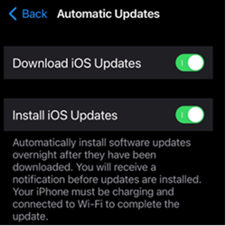 Starting with iOS/iPadOS 12, when updates are available, Apple devices automatically install the updates. By default, this feature is enabled on new devices. Keep this feature enabled.