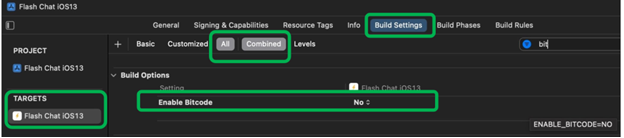 - Select Build options > Enable Bitcode.