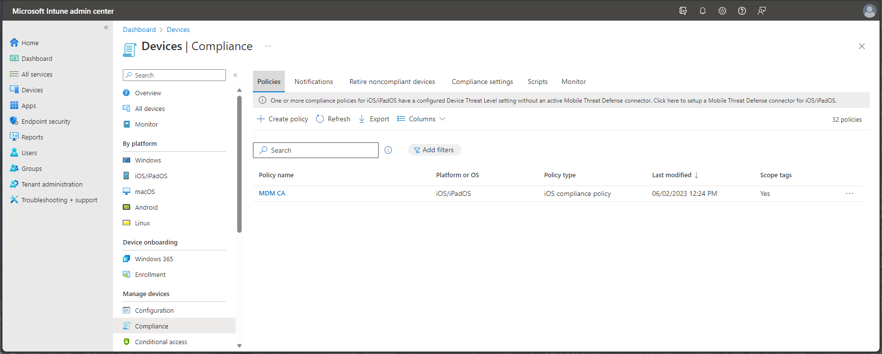 If you have previously used Intune in the Azure portal, you found the above details in the Azure portal by signing in to Intune and selecting Device Compliance.