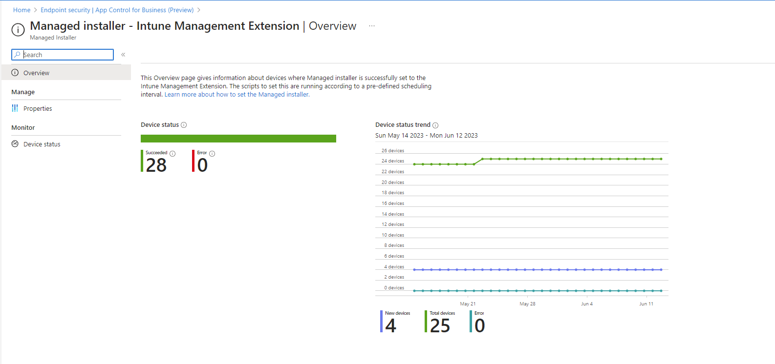 New devices aren't configured with the Intune Management Extension as a managed installer. This doesn't remove the Intune Management Extension as managed installer from devices that are already configured to use it.