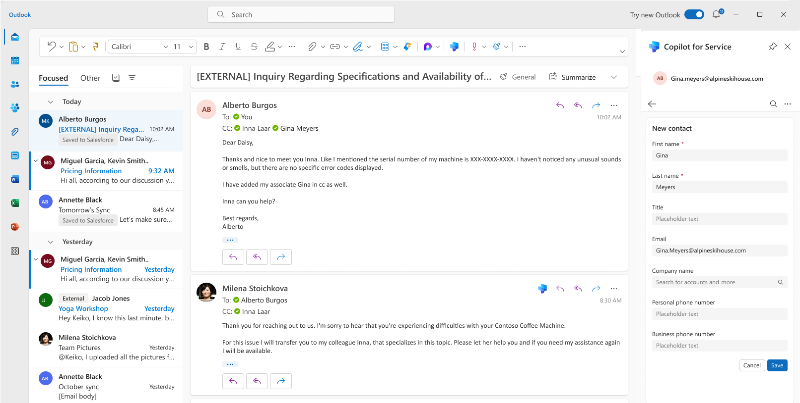 With Service in Microsoft 365 Copilot, you can easily connect your Outlook emails and meetings to cases and accounts in your customer relationship management (CRM) system to keep track of your interactions with customers. You can also view related activities for your contacts in the CRM.