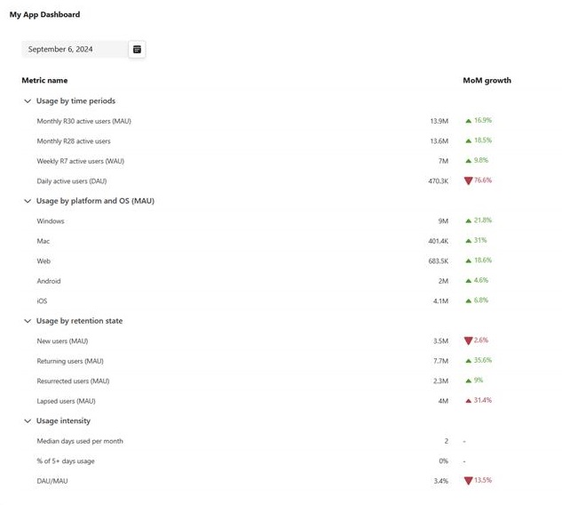 Whether you're tracking active users, retention rates, or usage patterns across different platforms, Developer Portal helps you with the information you need to optimize your app and ensure its success. Custom apps built for your org (LOB apps) can access app and agent usage data only for Teams. However, for third-party apps you can explore new Microsoft 365 dimensions, such as host product and capabilities.