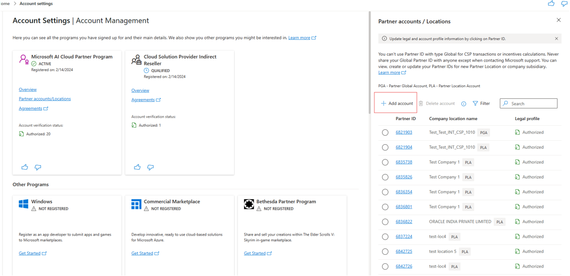 A Microsoft AI Cloud Partner Program account can be global or local. Each Microsoft AI Cloud Partner Program account has a PartnerID.