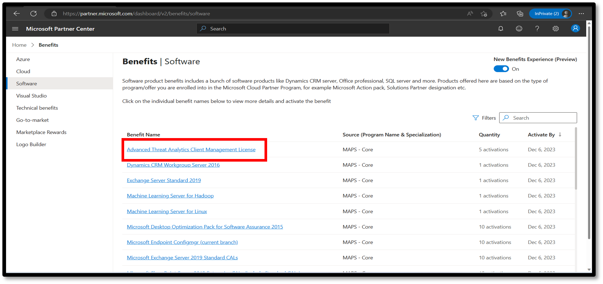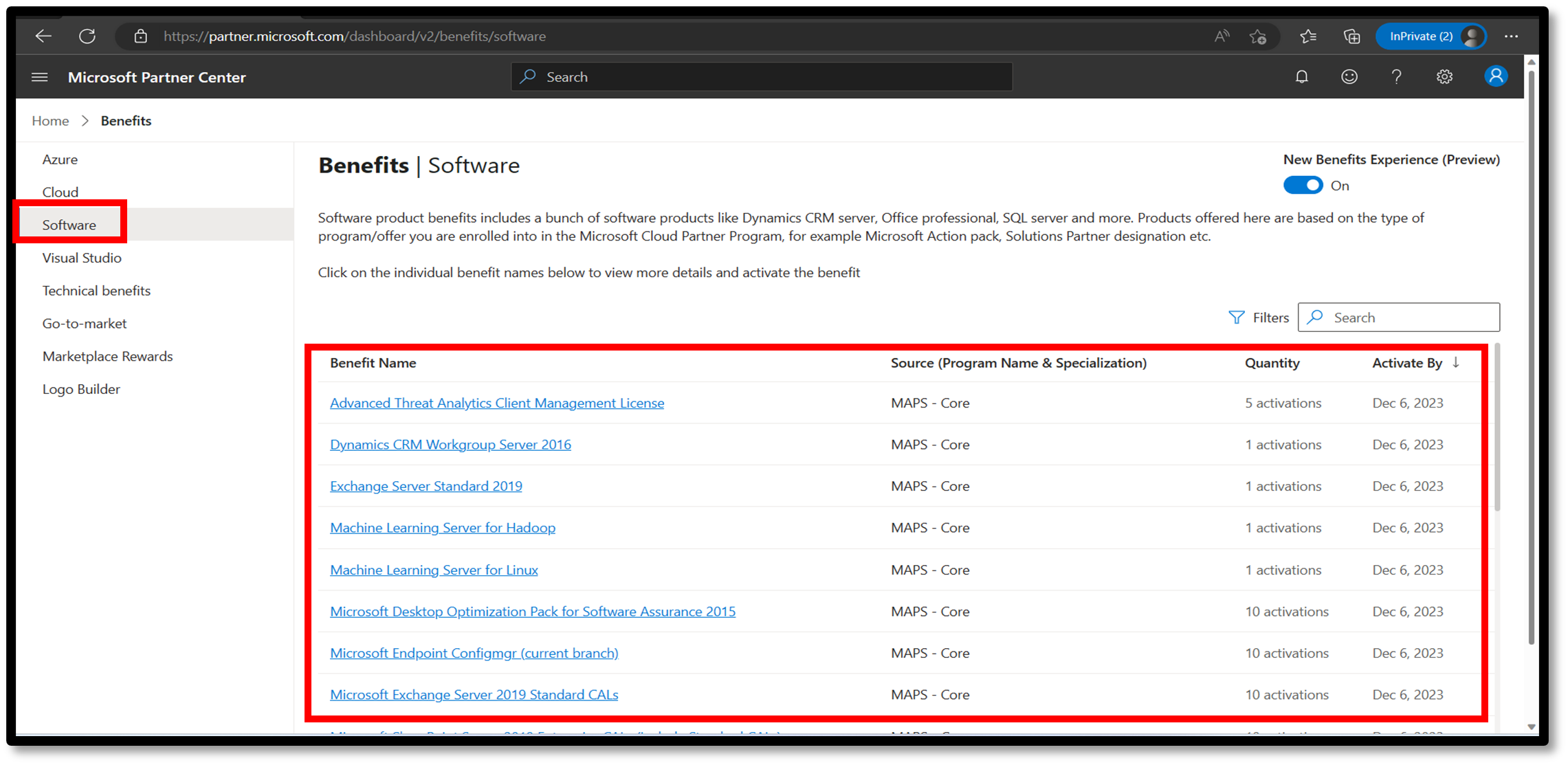 This article describes Software benefits that are available to Partners on the new Benefits preview in Partner Center. Software Benefits have limited activations, and Partners only need to renew the membership to get more software benefits and activations.