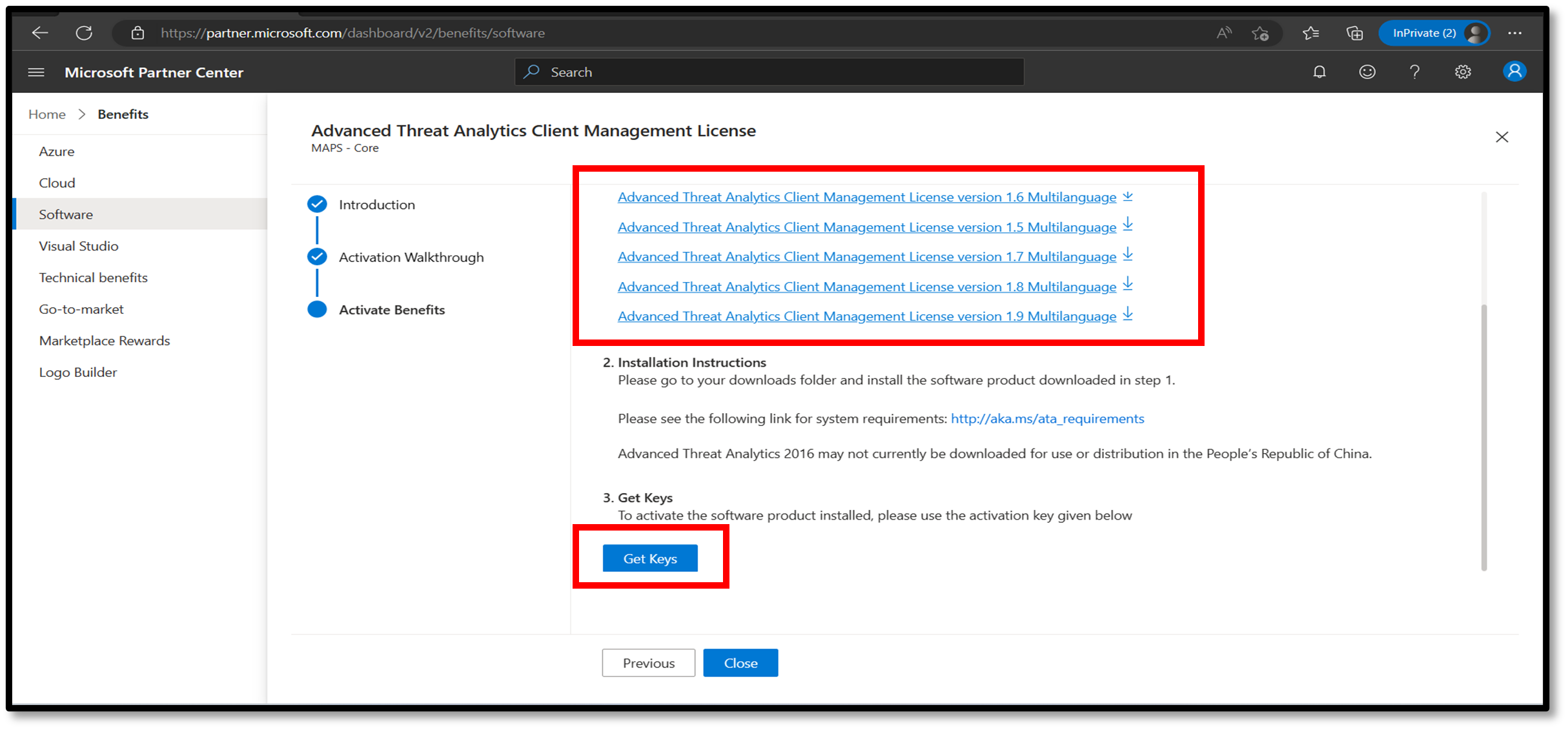 - Sign in to Partner Center and select Benefits > Software benefits.