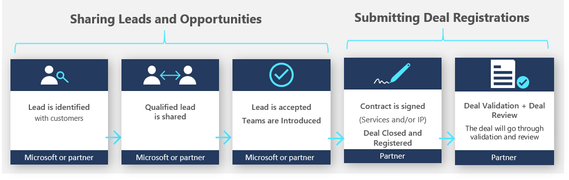 Co-selling opportunities are the result of acting on a lead and collaborating on it with Microsoft sales teams or Microsoft partners to provide a solution for a customer need.