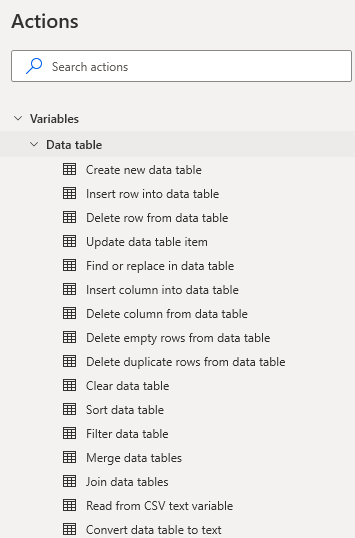 Application or file-specific Power Automate for desktop actions. For example, for Excel, PDF, and file/folder.