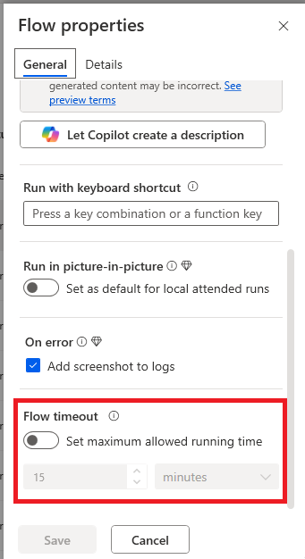 Adjust the timeout settings for distinct desktop and web automation scenarios. Learn more about Timeout configuration for UI and browser automation.