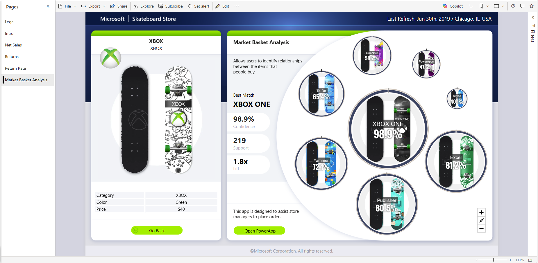 - Chat in Microsoft Teams directly from the Power BI service: Share a filtered view of your reports and dashboards and start conversations.