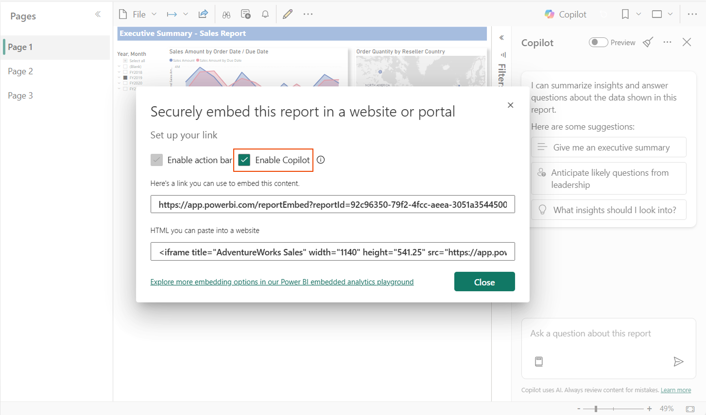 Enable Copilot in secure embedded reports