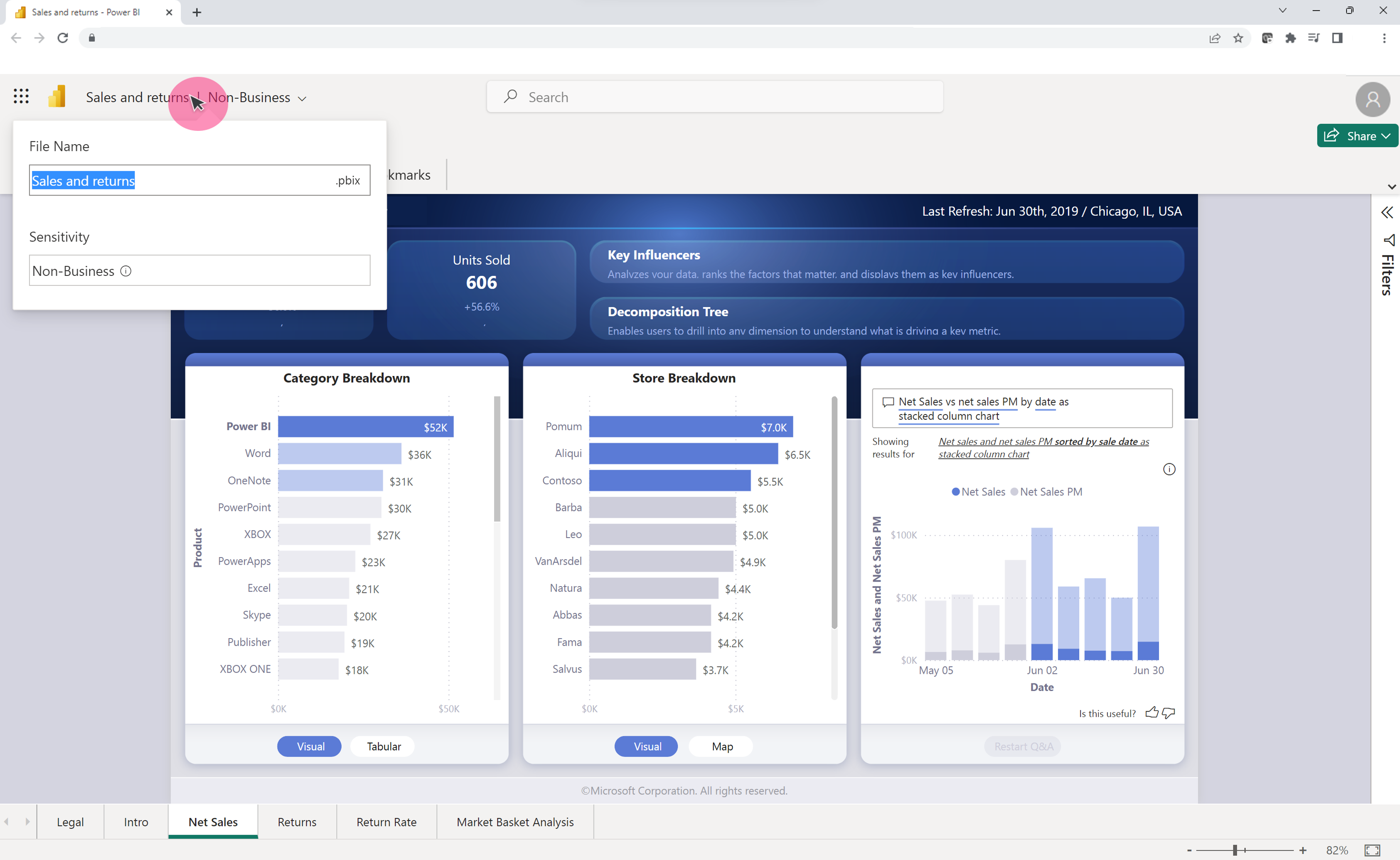 You can quickly view Power BI files in OneDrive and SharePoint without needing to install Power BI Desktop or download the file locally. Viewing Power BI files in your browser enables collaboration and a streamlined workflow before publishing through the Power BI Service.