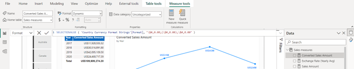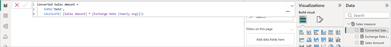 In the Data pane, under Sales measures, select Converted Sales Amount.