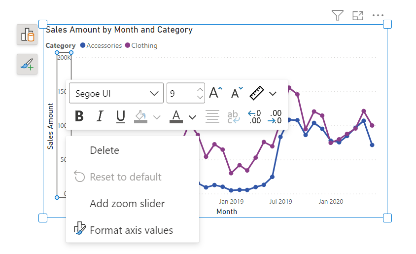 - Right-click a visual > select Format.