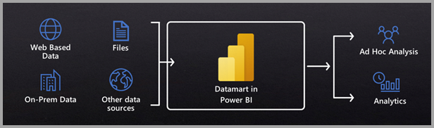 End-to-end semantic models: Enable Power BI creators to build end-to-end solutions without dependencies on other tooling or IT teams. Datamarts gets rid of managing orchestration between dataflows and semantic models through auto-generated semantic models, while providing visual experiences for querying data and ad-hoc analysis, all backed by Azure SQL DB.