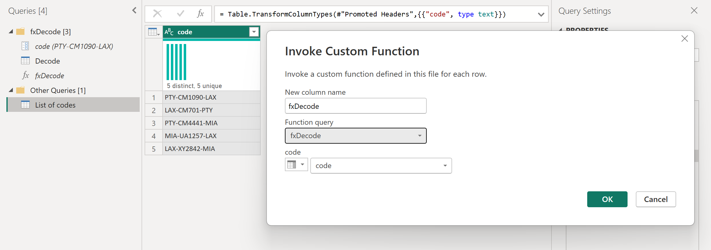 Power Query custom functions can be created from existing queries and parameters. For example, imagine a query that has several codes as a text string and you want to create a function that decodes those values.
