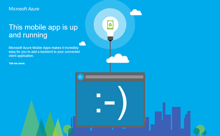 When your Mobile App backend has published successfully, you see a landing page indicating success.