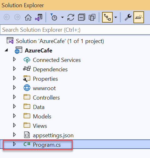 1. From the Visual Studio Solution Explorer, open the Program.cs file.
