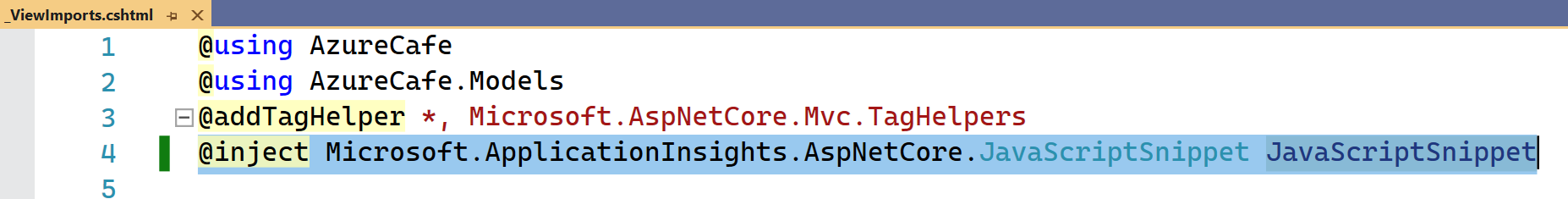 @inject Microsoft.ApplicationInsights.AspNetCore.JavaScriptSnippet JavaScriptSnippet