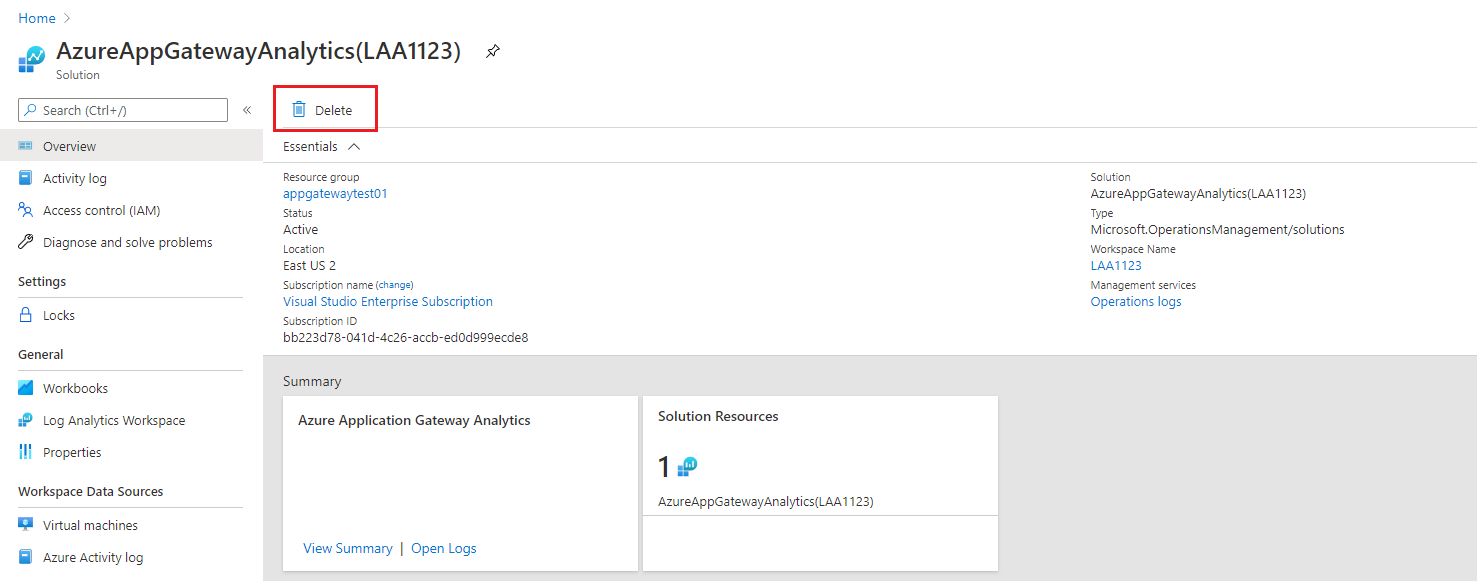 After you see all your metric and log insights, to clean up the Azure Gateway analytics solution from your workspace, delete the solution from the Solution Resources pane.