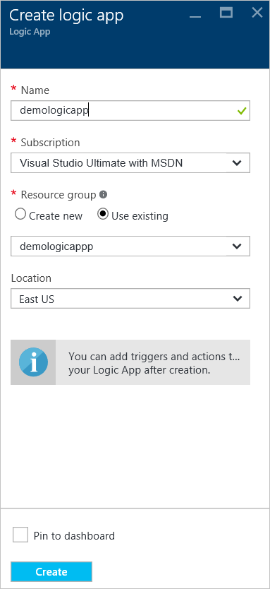 2. Search for Logic App, select it and then click Create.