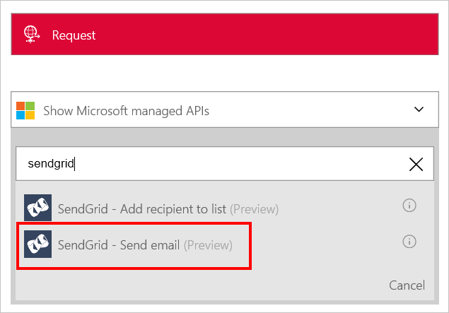 9. Search for SendGrid - Send email and click it.