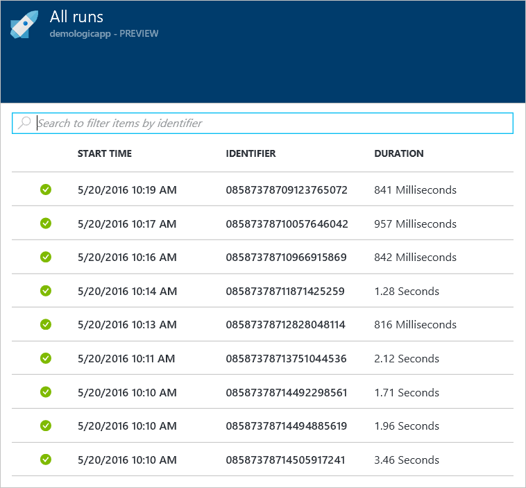 In addition to receiving emails, you can also see when the Logic App runs in the portal: