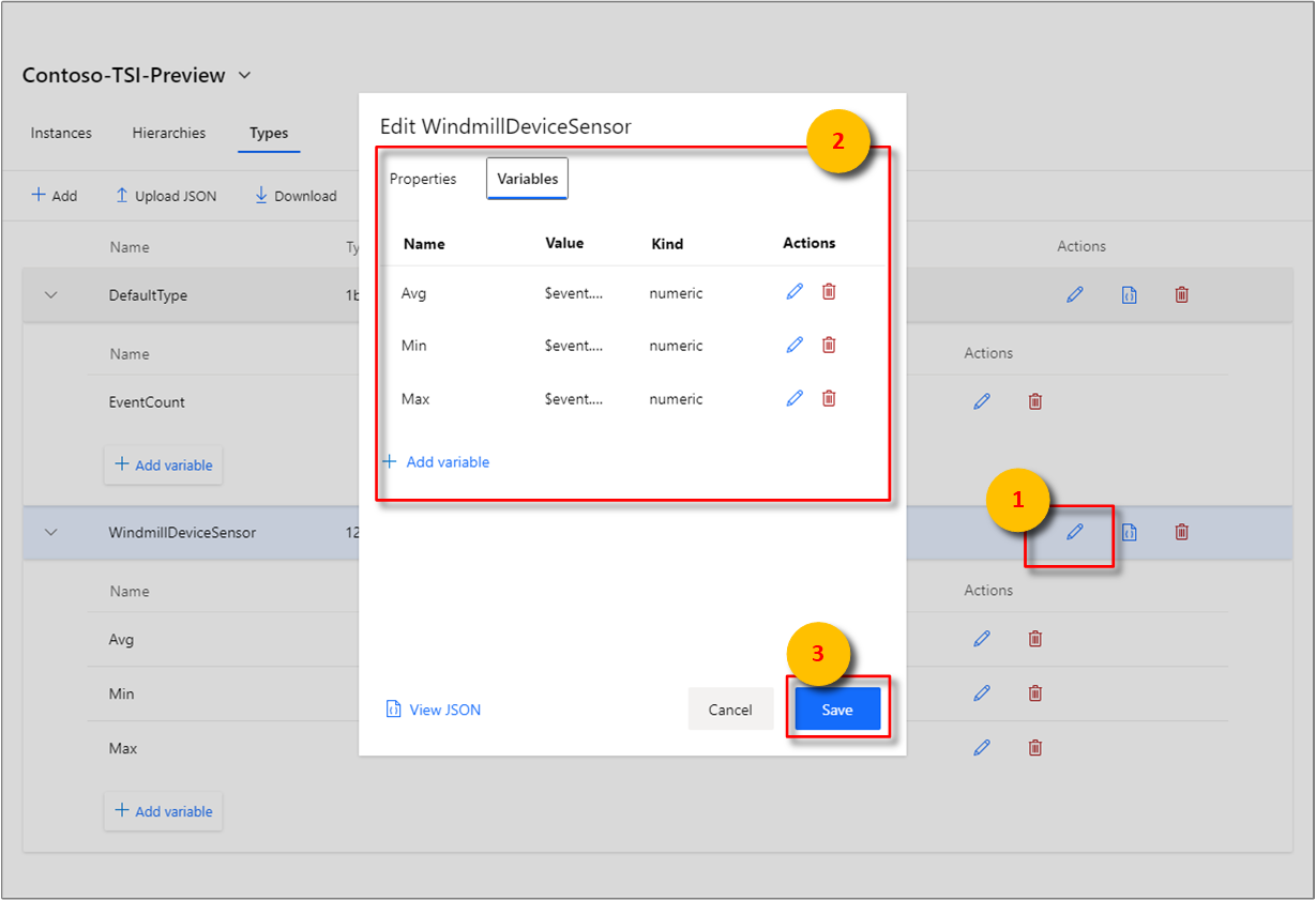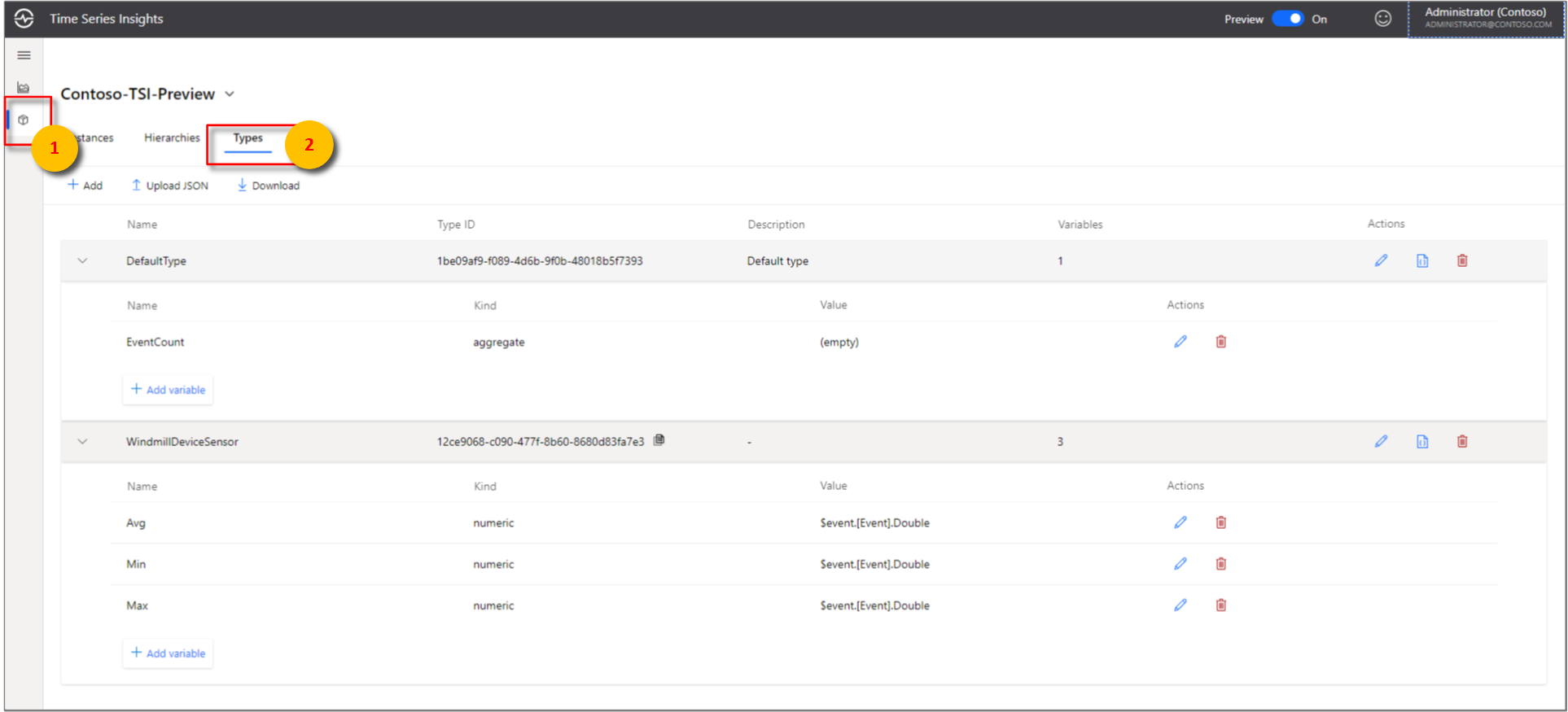 The Azure Time Series Insights explorer supports Type CREATE, READ, UPDATE, and DELETE operations within the browser.